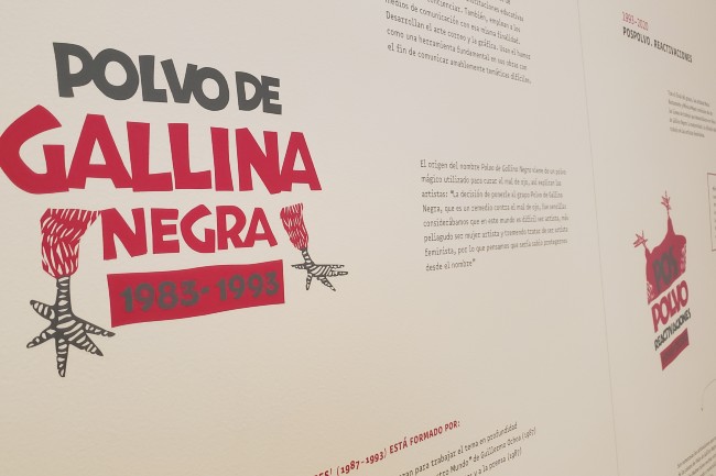 La exposición está dividida en tres momentos: “De antes de aquellos polvos (1977–1983)”, unaselección de piezas que exponen la carrera individual de ambas artistas; “Polvo de Gallina Negra (1983–1993)”, donde hay una selección documental, fotográfica y de videos que registran acciones del grupo; y “Pospolvo. Reactivaciones (1993–2020)”, donde las curadoras dan cuenta de cómo han continuado las carreras personales y colectivas de cada integrante tras la disolución del grupo.