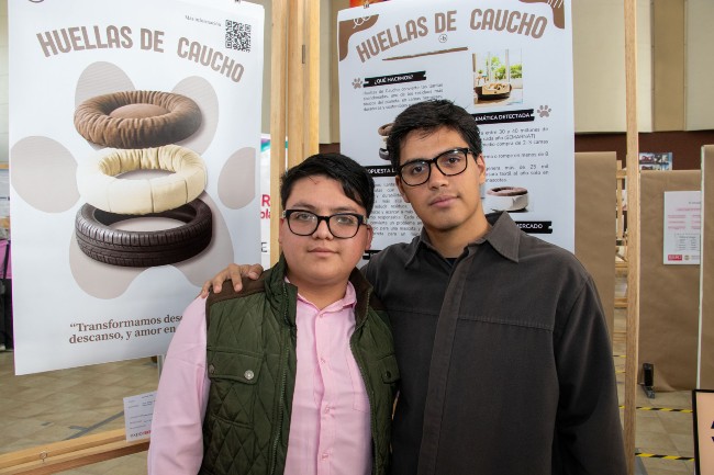 Diego Molinar Escalante y Maximiliano Morán Garrido, alumnos de la Licenciatura en Liderazgo para el Emprendimiento Innovador (LEINN), crearon Huellas de caucho, un proyecto que reutiliza llantas desechadas para transformarlas en camas para perro cómodas, resistentes y estéticamente pensadas para el hogar.